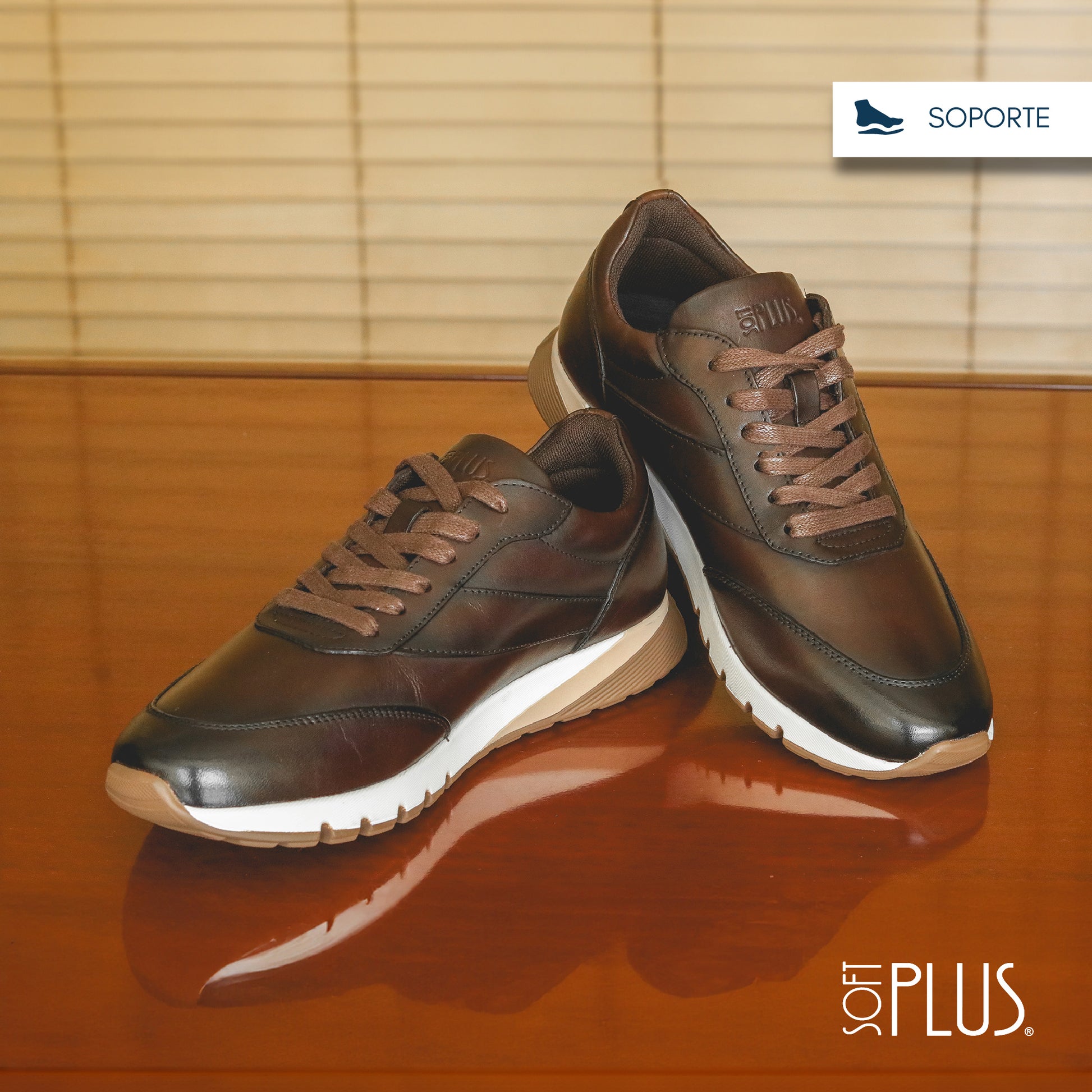 Este calzado casual para caballero de la marca Soft Plus combina estilo y confort, con un diseño moderno y elegante. Hecho de cuero, es fácil de limpiar y mantener. Su corte bajo y las costuras decorativas le dan un toque sofisticado, mientras que la suela de goma flexible asegura un buen agarre y comodidad. Perfecto para complementar outfits informales, como jeans o chinos, ofreciendo un look práctico y versátil.